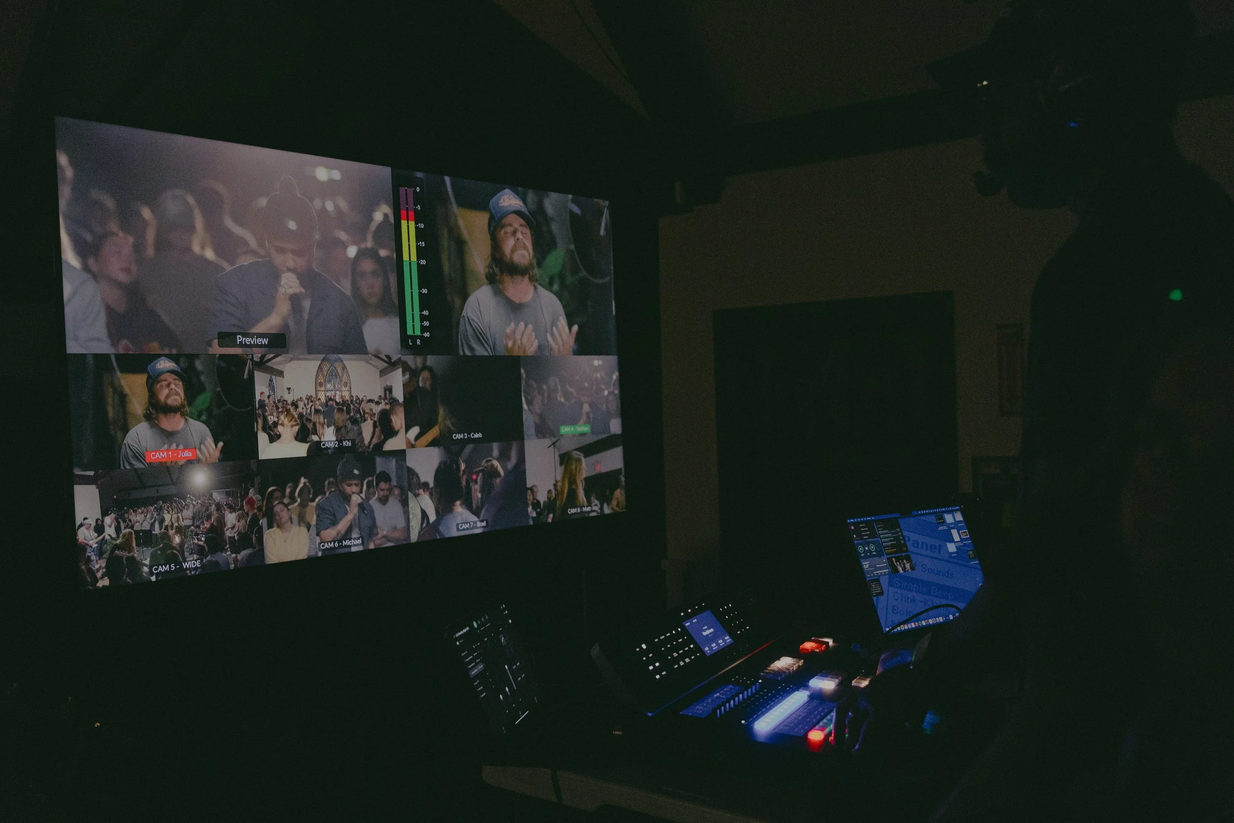 Our church video team is a group of dedicated individuals responsible for capturing, editing, and managing video content to enhance worship experiences and communication efforts. They operate cameras, manage audio, and create polished videos that convey the church's message to its congregation and beyond. Our video team is responsible for helping out at our weekend services as well as at our mid-week events.